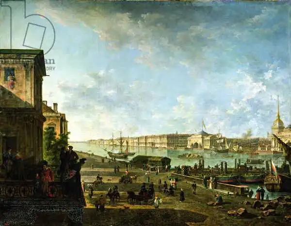 Alekseev namaloval obraz Admiralty and the Winter Palace viewed from the Military College v roce 1794. Převládající barvy tohoto obrazu jsou tmavé barvy a jeho formát je na šířku. Umístěním originálu obrazu je State Russian Museum, St. Petersburg, Russia. Reprodukci tohoto obrazu tiskneme na přání - můžete si zvolit rozměr i provedení reprodukce.