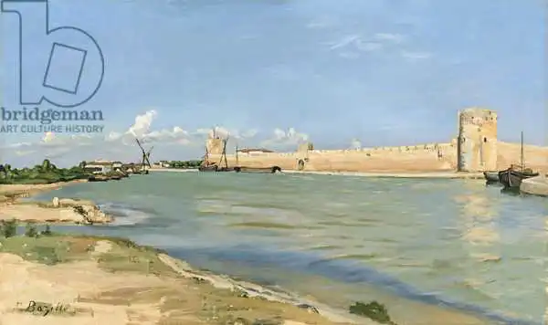 60x100 Bazille namaloval obraz Ramparts at Aigues-Mortes v roce 1867. Převládající barvy tohoto obrazu jsou do modra a jeho formát je podlouhlý. Rozměr originálu je 60x100. Umístěním originálu obrazu je National Gallery of Art, Washington DC, USA. Reprodukci tohoto obrazu tiskneme na přání - můžete si zvolit rozměr i provedení reprodukce.