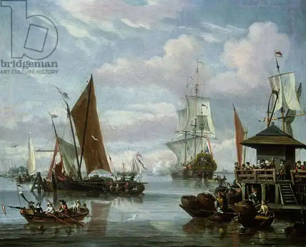 Blaauw, Johannes de: Estuary Scene with Boats and Fisherman