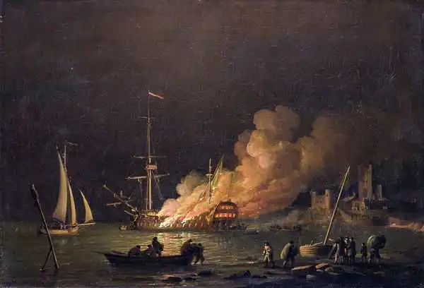 Ship on Fire at Night