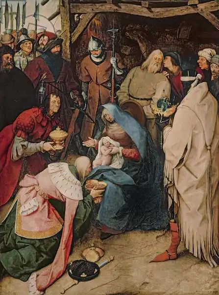Brueghel namaloval obraz Klanění tří králů v roce 1564. Převládající barvy tohoto obrazu jsou do hněda a jeho formát je na výšku. Rozměr originálu je 111.1x83.2. Umístěním originálu obrazu je National Gallery, London, UK. Reprodukci tohoto obrazu tiskneme na přání - můžete si zvolit rozměr i provedení reprodukce.
