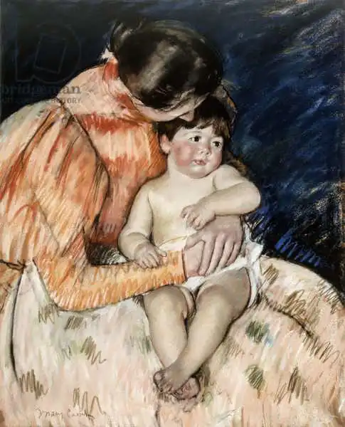Cassatt namaloval obraz Mother and Child v roce 1890s. Převládající barvy tohoto obrazu jsou do oranžova a jeho formát je na výšku. Rozměr originálu je 80x64. Umístěním originálu obrazu je Pushkin Museum, Moscow, Russia. Reprodukci tohoto obrazu tiskneme na přání - můžete si zvolit rozměr i provedení reprodukce.