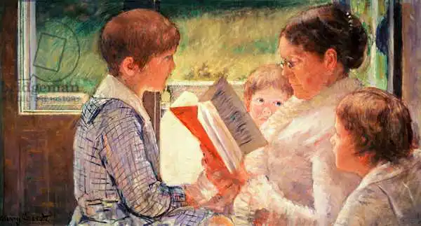 Cassatt namaloval obraz Mrs. Cassatt Reading to her Grandchildren v roce 1888. Převládající barvy tohoto obrazu jsou do hněda a jeho formát je podlouhlý. Obraz je umístěn v soukromé sbírce. Reprodukci tohoto obrazu tiskneme na přání - můžete si zvolit rozměr i provedení reprodukce.
