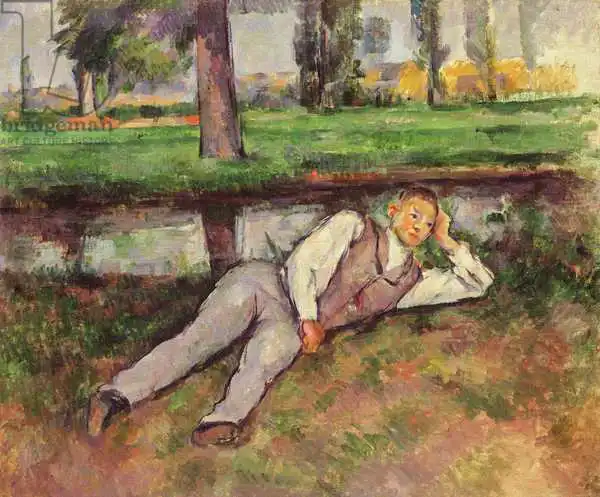 Cézanne namaloval obraz Boy Resting v roce 1887. Převládající barvy tohoto obrazu jsou do zelena a jeho formát je na šířku. Umístěním originálu obrazu je Armand Hammer Foundation, USA. Reprodukci tohoto obrazu tiskneme na přání - můžete si zvolit rozměr i provedení reprodukce.