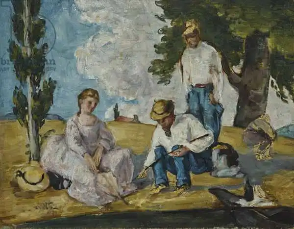 Cézanne namaloval obraz Picnic on a Riverbank v roce 1873. Převládající barvy tohoto obrazu jsou do zelena a jeho formát je na šířku. Rozměr originálu je 26.4x34. Umístěním originálu obrazu je Yale University Art Gallery, New Haven, CT, USA. Reprodukci tohoto obrazu tiskneme na přání - můžete si zvolit rozměr i provedení reprodukce.