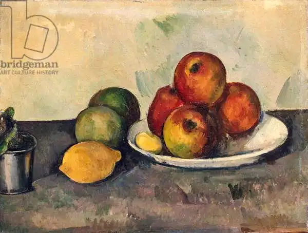 Cézanne namaloval obraz Still life with Apples v roce 1890. Převládající barvy tohoto obrazu jsou do oranžova a jeho formát je na šířku. Umístěním originálu obrazu je Ermitáž, Petrohrad. Reprodukci tohoto obrazu tiskneme na přání - můžete si zvolit rozměr i provedení reprodukce.