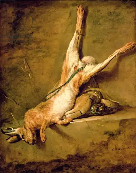 Francouzský malíř, syn truhláře, Jean-Baptiste-Simeon Chardin (1699-1779) se narodil v Paříži, kterou za svůj život opustil zřídkakdy. Začátky své umělecké kariéry strávil jako učeň u různých pařížských mistrů. V roce 1728 byl přijat na Académie Royale de Peinture et de Sculpture. Pravidelně vystavuje svá díla a je vzorným akademikem. Po 50 let pravidelně navštěvuje všechny schůze. Popularitu mi vynesly jeho zátiší, např. Se zajícem, což přitáhlo pozornost Ludvíka XV., který mu v roce 1757 věnoval studio v Louveru. Svou poslední klasicistní olejomalbu vytvořil v roce 1776. Zemřel ve věku 80 let na vážné zdravotní potíže. Svou tvorbou ovlivnil spoustu světově prosnulých umělců. Jeho největším obdivovatel byl Henri Matiss, který jako student dělal čtyři kopie Chardinových obrazů. Jeho vliv nalezneme i u obrazů Paula Cézanaa a Édouarda Maneta.
