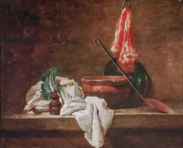 Francouzský malíř, syn truhláře, Jean-Baptiste-Simeon Chardin (1699-1779) se narodil v Paříži, kterou za svůj život opustil zřídkakdy. Začátky své umělecké kariéry strávil jako učeň u různých pařížských mistrů. V roce 1728 byl přijat na Académie Royale de Peinture et de Sculpture. Pravidelně vystavuje svá díla a je vzorným akademikem. Po 50 let pravidelně navštěvuje všechny schůze. Popularitu mi vynesly jeho zátiší, např. Se zajícem, což přitáhlo pozornost Ludvíka XV., který mu v roce 1757 věnoval studio v Louveru. Svou poslední klasicistní olejomalbu vytvořil v roce 1776. Zemřel ve věku 80 let na vážné zdravotní potíže. Svou tvorbou ovlivnil spoustu světově prosnulých umělců. Jeho největším obdivovatel byl Henri Matiss, který jako student dělal čtyři kopie Chardinových obrazů. Jeho vliv nalezneme i u obrazů Paula Cézanaa a Édouarda Maneta.