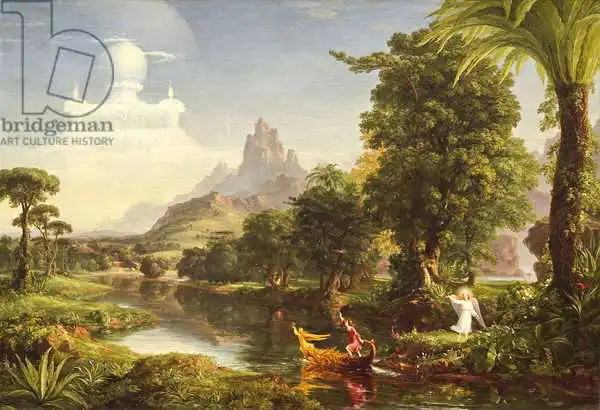 Cole namaloval obraz Voyage of Life: Youth v roce 1842. Převládající barvy tohoto obrazu jsou do zelena a jeho formát je na šířku. Rozměr originálu je 134.3 x 194.9. Umístěním originálu obrazu je National Gallery of Art, Washington DC, USA. Reprodukci tohoto obrazu tiskneme na přání - můžete si zvolit rozměr i provedení reprodukce.
