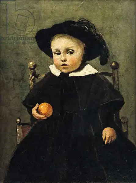 Corot namaloval obraz Painter Adolphe Desbrochers (1841-1902) as a Child, Holding an Orange v roce 1845. Převládající barvy tohoto obrazu jsou tmavé barvy a jeho formát je na výšku. Rozměr originálu je 24x19.5. Umístěním originálu obrazu je Louvre, Paris, France. Reprodukci tohoto obrazu tiskneme na přání - můžete si zvolit rozměr i provedení reprodukce.