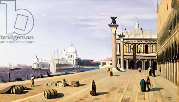 Corot namaloval obraz Riva degli Schiavone, Venice v roce 1845. Převládající barvy tohoto obrazu jsou do oranžova a jeho formát je podlouhlý. Obraz je umístěn v soukromé sbírce. Reprodukci tohoto obrazu tiskneme na přání - můžete si zvolit rozměr i provedení reprodukce.