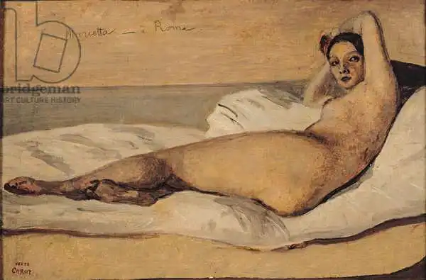 Corot namaloval obraz Roman Odalisque (Marietta) v roce 1843. Převládající barvy tohoto obrazu jsou do hněda a jeho formát je na šířku. Rozměr originálu je 29.3x44.2. Umístěním originálu obrazu je Musee de la Ville de Paris, Musee du Petit-Palais, France. Reprodukci tohoto obrazu tiskneme na přání - můžete si zvolit rozměr i provedení reprodukce.