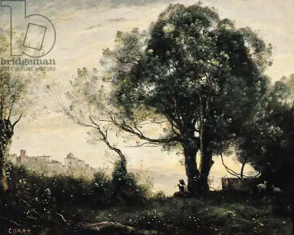 Jean-Baptiste Camille Corot (1796 – 1875). Francouzský malíř, krajinář. Corot byl vedoucí uměleckou osobností barbizonské malířské školy ve Francii v polovině 19. století. Byl ústřední postavou krajinářského malířství. Pro jeho práce je typické současné propojení neoklasicismu a počínajícího plenérového impresionismu. Právě jemu patřilo zvolání Claude Moneta: „Je zde pouze jediný umělec - Corot. My nejsme nic ve srovnání s ním, nic.“ Neméně významný je Corotův příspěvek k figurálnímu malířství: Degas dokonce upřednostňoval Corotovy postavy před krajinami a figurální motivy malované Picassem v klasickém stylu jsou považované za Picassovu poctu Corotovu stylu. Historici volně dělí jeho práci do jednotlivých období, ale hranice nejsou přesně dané, k čemuž také přispíval Corotův zvyk dokončit obraz někdy až léta poté, co ho začal malovat.