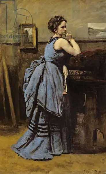 Corot namaloval obraz Woman in Blue v roce 1874. Převládající barvy tohoto obrazu jsou do hněda a jeho formát je na výšku. Rozměr originálu je 80x50.5. Umístěním originálu obrazu je Louvre, Paris, France. Reprodukci tohoto obrazu tiskneme na přání - můžete si zvolit rozměr i provedení reprodukce.