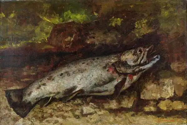 Courbet namaloval obraz Trout v roce 1873. Převládající barvy tohoto obrazu jsou do zelena a jeho formát je na šířku. Rozměr originálu je 65.5x98.5. Umístěním originálu obrazu je Musee dOrsay, Paris, France. Reprodukci tohoto obrazu tiskneme na přání - můžete si zvolit rozměr i provedení reprodukce.