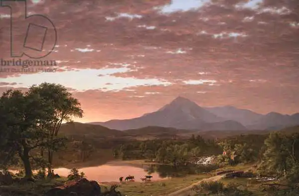 Church namaloval obraz Mt. Ktaadn v roce 1853. Převládající barvy tohoto obrazu jsou do hněda a jeho formát je na šířku. Rozměr originálu je 92.1x140.3. Umístěním originálu obrazu je Yale University Art Gallery, New Haven, CT, USA. Reprodukci tohoto obrazu tiskneme na přání - můžete si zvolit rozměr i provedení reprodukce.