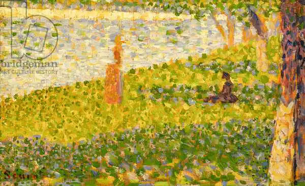 Seurat namaloval obraz Women on the River Bank, study for La Grande Jatte v roce 1885. Převládající barvy tohoto obrazu jsou do zelena a jeho formát je podlouhlý. Rozměr originálu je 15.7x25. Obraz je umístěn v soukromé sbírce. Reprodukci tohoto obrazu tiskneme na přání - můžete si zvolit rozměr i provedení reprodukce.
