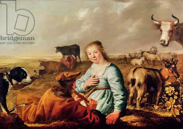 Nejslavnější z rodiny malířů, žák svého otce, Aelbert Jacobs Cuyp (1620-1691) byl holandský krajinář zlatého věku 17. století. Často je přirovnáván ke Claude Lorrainovi. O Cuypově životě se nedochovalo mnoho informací. Z toho co víme, je zřejmé, že se stal jáhnem rok po té, co se oženil s Cornelii Bosmanovou. Více toho ale víme o jeho celoživotní malířské práci. Nejvíce aktivní a na vrcholu své kariéry byl v letech 1630 - 1650. Jeho malířský styl ovlivnil Jan Josephszoon van Goyena, žlutými a světlehnědými tóny, patrnými na obraze Krajina s dobytkem, nebo Maas at Dordrecht a jeho otec, kterému jakožto portrétistovi pořizoval krajinná pozadí pro jeho obrazy. Cyup své obrazy pochopitelně podepisoval ale bohužel jen jménem. Nelze tedy přesně určit, kdy byla vytvořena.