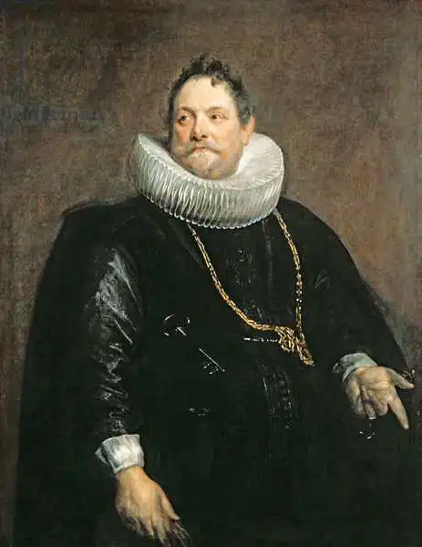 Anthonis van Dyck (1599 – 1641). Jeden z nejvýznamnějších vlámských malířů. Zpočátku, jako většina malířů jeho doby, maloval převážně mytologické a náboženské výjevy. Později, ve svých třiceti letech, se specializovat na portréty (v Rubensově stylu). Maloval v jemné barevné škále, kterou často kontrastoval s černým pozadím. Modely umisťoval mezi různé architektonické prvky či závěsy a maloval je ve skvostných oděvech. Kompozice byly na tehdejší dobu dynamické, anatomie postav propracovaná. Styl jeho portrétů se od jeho mytologických obrazů hodně liší. Jeho portréty jsou trochu melancholické, uzavřené a rezervované. Na rozdíl od velkolepých a dramatických pláten s mytologickými motivy.