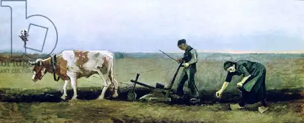 70.5x170 Gogh namaloval obraz Labourer and Peasant Planting Potatoes v roce 1884. Převládající barvy tohoto obrazu jsou do zelena a jeho formát je podlouhlý. Rozměr originálu je 70.5x170. Umístěním originálu obrazu je Von der Heydt Museum, Wuppertal, Germany. Reprodukci tohoto obrazu tiskneme na přání - můžete si zvolit rozměr i provedení reprodukce.