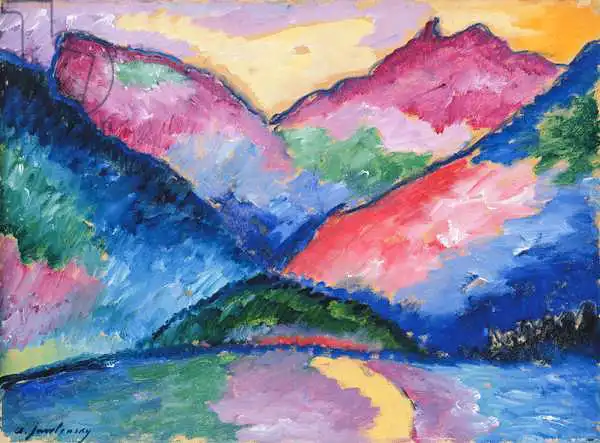 33x45 Jawlensky namaloval obraz Oy Valley v roce 1910. Převládající barvy tohoto obrazu jsou do modra a jeho formát je na šířku. Rozměr originálu je 33x45. Umístěním originálu obrazu je Hamburger Kunsthalle, Hamburg, Germany. Reprodukci tohoto obrazu tiskneme na přání - můžete si zvolit rozměr i provedení reprodukce.