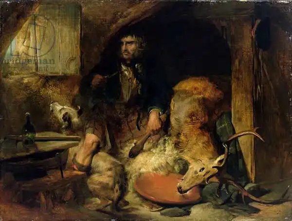 Sir Edwin Henry Landseer (1802-1873) byl anglický všestranný umělec. Podobně jako Sir Thomas Lawrence, byl i Landseer talent od narození. Od mala se učil od významných klasicistních umělců své doby. Byl to právě Benjamin Robert Haydon, kdo prohloubil Landseerovu znalost zvířecí anatomie, díky které se jeho obrazy staly špičkou. Ve 13 letech vystavuje v Královské akademii, ve 24 letech získává titul akademika a v 29 je povýšen do šlechtického stavu. Maloval bezkonkurenčně nejlepší obrazy se zvířecí tématikou. Obraz Donald McIntyra se psy tak ukazuje tato zvířata jako skvělé pomocníky ale také jako oddané přátele. Trávil spoustu dnů v divočině a na Na vysočině pozorováním zvěře. Za pozornost jistě stojí i Scéna ze Snu noci svatojánské. Do pozdějších prací se promítá jeho melancholická až zahořklá povaha. V roce 1828 byl pověřen k ilustrování románu Sira Waltera Scotta. V den jeho smrti 1. 10. 1873 byl vyhlášen státní smutek a vlajky byly na půl žerdi.