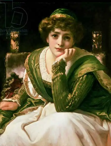 Všestraný anglický klasicistní umělec baron Frederick Leighton (1830 - 1896) navštívil několik uměleckých škol v Anglii a Francii a k jeho malířskému umu mu pomohla pařížská setkání s malířkou Ingres či malíři Delacroix, Corotem nebo Milletem. Když se v roce 1860 vrátil do Londýna, přidal se ke skupině umělců zvaných prerafaelité, jejichž zakládajícím členem byl Sir John Everett Millias. Jeho obrazy reprezentovaly Británii na pařížské výstavě v roce 1900. Mezi jeho práce patřily portréty, ilustrace knih ale především antické výjevy - Johnatan a David. Leighton získal za svou celoživotní práci a přínos britské umělecké scéně šlechtický titul. Honosil se s ním však pouze jeden den, neboť hned po jeho udělení zemřel.