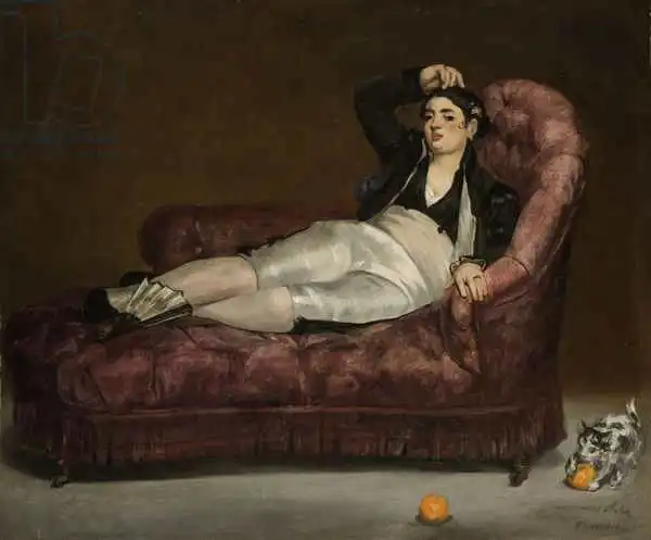 Manet namaloval obraz Reclining Young Woman in Spanish Costume v roce 1862. Převládající barvy tohoto obrazu jsou tmavé barvy a jeho formát je na šířku. Rozměr originálu je 94.7x113.7. Umístěním originálu obrazu je Yale University Art Gallery, New Haven, CT, USA. Reprodukci tohoto obrazu tiskneme na přání - můžete si zvolit rozměr i provedení reprodukce.