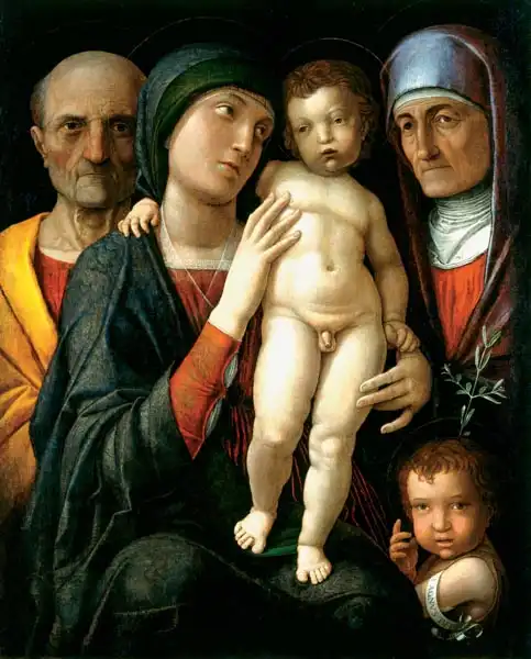 Mantegna namaloval obraz Svatá rodina v roce 1495-1500. Převládající barvy tohoto obrazu jsou do červena a jeho formát je na výšku. Rozměr originálu je 61,5x75 cm. Umístěním originálu obrazu je Staatliche Gemäldegalerie, Dresden, Germany. Reprodukci tohoto obrazu tiskneme na přání - můžete si zvolit rozměr i provedení reprodukce.