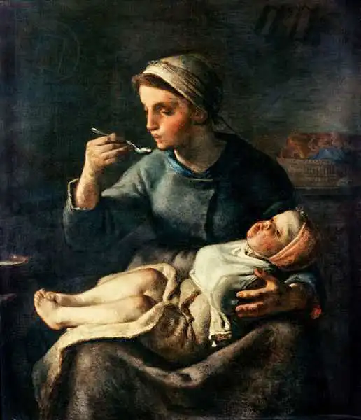 Millet namaloval obraz Baby Cereal v roce 1867. Převládající barvy tohoto obrazu jsou Černobílé a jeho formát je na výšku. Umístěním originálu obrazu je Musee des Beaux-Arts, Marseille, France. Reprodukci tohoto obrazu tiskneme na přání - můžete si zvolit rozměr i provedení reprodukce.
