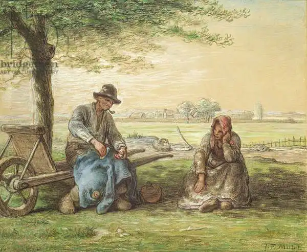 Millet namaloval obraz Peasants Resting v roce 1866. Převládající barvy tohoto obrazu jsou do zelena a jeho formát je na šířku. Umístěním originálu obrazu je Armand Hammer Foundation, USA. Reprodukci tohoto obrazu tiskneme na přání - můžete si zvolit rozměr i provedení reprodukce.