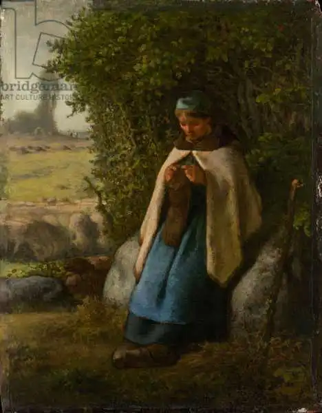 Millet namaloval obraz Shepherdess Seated on a Rock v roce 1856. Převládající barvy tohoto obrazu jsou tmavé barvy a jeho formát je na výšku. Rozměr originálu je 35.9x28.3. Umístěním originálu obrazu je Metropolitan Museum of Art, New York, USA. Reprodukci tohoto obrazu tiskneme na přání - můžete si zvolit rozměr i provedení reprodukce.