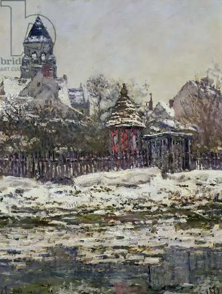 Monet namaloval obraz Church at Vetheuil v roce 1879. Převládající barvy tohoto obrazu jsou tmavé barvy a jeho formát je na výšku. Rozměr originálu je 65.5x50.5. Umístěním originálu obrazu je Musee dOrsay, Paris, France. Reprodukci tohoto obrazu tiskneme na přání - můžete si zvolit rozměr i provedení reprodukce.