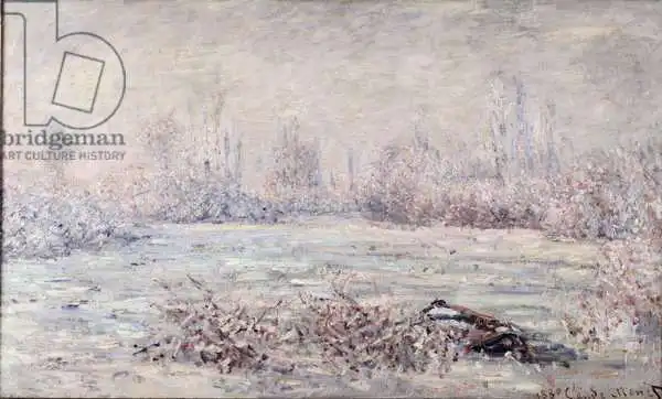 61x100 Monet namaloval obraz Frost near Vetheuil v roce 1880. Převládající barvy tohoto obrazu jsou do modra a jeho formát je podlouhlý. Rozměr originálu je 61x100. Umístěním originálu obrazu je Musee dOrsay, Paris, France. Reprodukci tohoto obrazu tiskneme na přání - můžete si zvolit rozměr i provedení reprodukce.