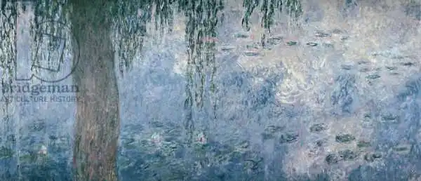 Monet namaloval obraz Waterlilies: Morning with Weeping Willows v roce 1914-18. Převládající barvy tohoto obrazu jsou do zelena a jeho formát je podlouhlý. Rozměr originálu je 200x425. Umístěním originálu obrazu je Musee de lOrangerie, Paris, France. Reprodukci tohoto obrazu tiskneme na přání - můžete si zvolit rozměr i provedení reprodukce.