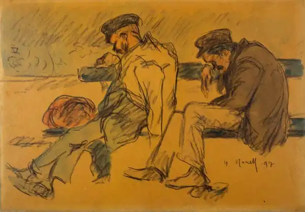 Nonell namaloval obraz Dva spící muži v roce 1897. Převládající barvy tohoto obrazu jsou do hněda a jeho formát je na šířku. Rozměr originálu je 39,5x27,6cm. Umístěním originálu obrazu je Museu Nacional Art de Catalunya, Barcelona, Spain. Reprodukci tohoto obrazu tiskneme na přání - můžete si zvolit rozměr i provedení reprodukce.