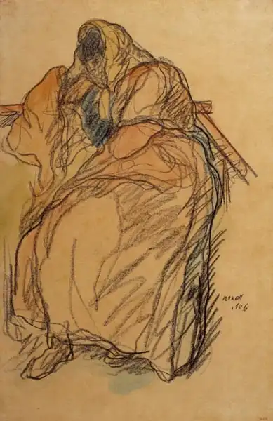 Rok vzniku: 1906 Provedení: litografická tužka a akvarel na papíře Originál uložen: Museu Nacional Art de Catalunya, Barcelona, Spain Rozměr originálu: 31,8x48,6cm