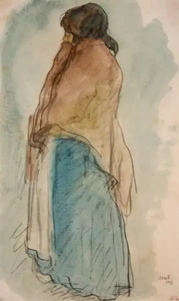 Rok vzniku: 1906 Provedení: litografická tužka a akvarel na papíře Originál uložen: Museu Nacional Art de Catalunya, Barcelona, Spain Rozměr originálu: 31,8x48,5cm