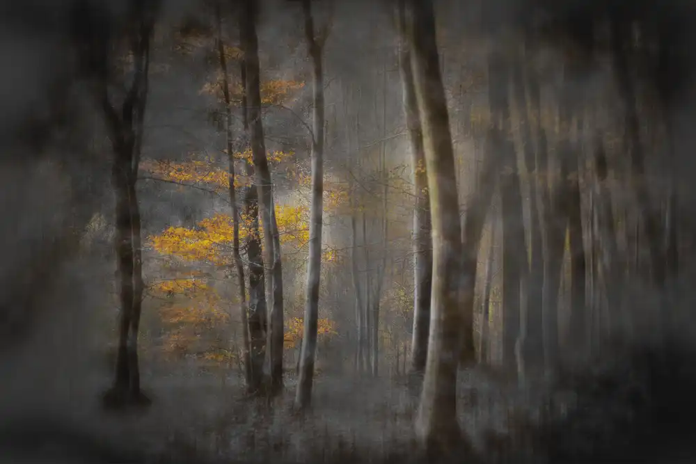 #les #podzim #pády #stromy #žlutá #mlha #krajina #lesy #pád #kreativní úpravy