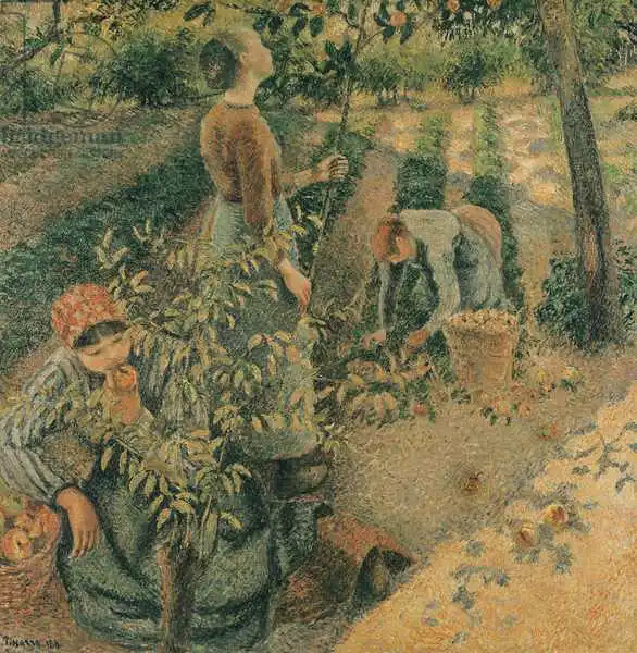 Pissarro namaloval obraz Apple Pickers v roce 1886. Převládající barvy tohoto obrazu jsou do zelena a jeho formát je Čtverec. Rozměr originálu je 128x128. Umístěním originálu obrazu je Ohara Museum of Art, Kurashiki, Japan. Reprodukci tohoto obrazu tiskneme na přání - můžete si zvolit rozměr i provedení reprodukce.