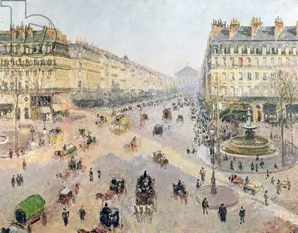 Pissarro namaloval obraz Avenue de L Opera, Paris, Sunlight, Winter Morning v roce 1880. Převládající barvy tohoto obrazu jsou do zelena a jeho formát je na šířku. Rozměr originálu je 73x91. Umístěním originálu obrazu je Musee des Beaux-Arts, Reims, France. Reprodukci tohoto obrazu tiskneme na přání - můžete si zvolit rozměr i provedení reprodukce.