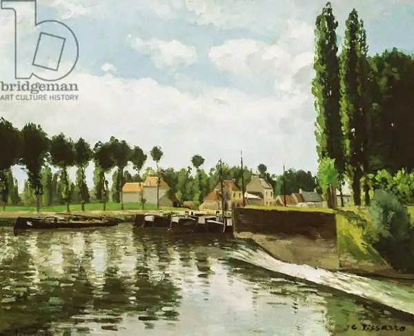Pissarro namaloval obraz Lock at Pontoise v roce 1869. Převládající barvy tohoto obrazu jsou do zelena a jeho formát je na šířku. Rozměr originálu je 58.4x71.8. Obraz je umístěn v soukromé sbírce. Reprodukci tohoto obrazu tiskneme na přání - můžete si zvolit rozměr i provedení reprodukce.