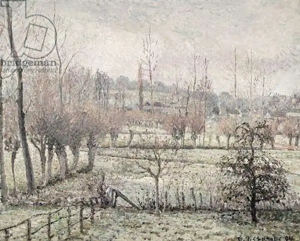 Pissarro namaloval obraz Snow Effect at Eragny v roce 1894. Převládající barvy tohoto obrazu jsou do zelena a jeho formát je na šířku. Rozměr originálu je 73.5x92.5. Umístěním originálu obrazu je Musee dOrsay, Paris, France. Reprodukci tohoto obrazu tiskneme na přání - můžete si zvolit rozměr i provedení reprodukce.
