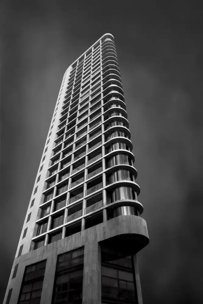 #architektura #budova #budovy #mrakodrap #mrakodrapy #město #město #pracoviště #metropoly #kanceláře #kancelářské budovy #věž #věže #brutalismus #venku #pevky #vnější krajina #clodark #low key #low-key #pov #perspective #bw #černobílý #monochrom.