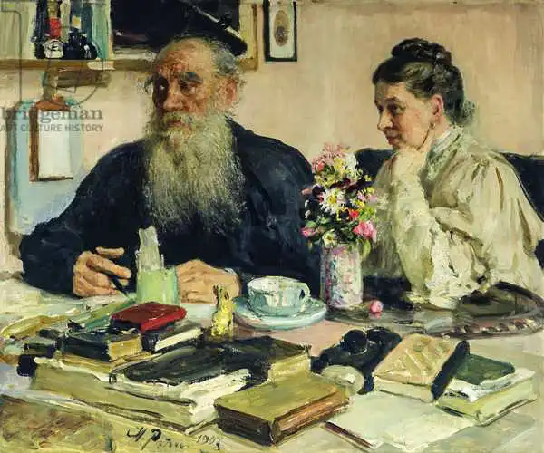 Leo Tolstoy with his wife in Yasnaya Polyana