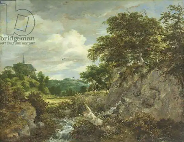 Jacob van Ruisdael (1629-1682) byl holandský mistr a krajinář ve zlatém věku baroka. Narodil se ve městě Haarlem. Studoval u svého otce a strýce a později prodával rámy. Jeho tvorbu hodně ovlivnili tehdejší malířští mistři. Ač byl jeho talent mimořádný, nebyly jeho obrazy ve své době pochopeny. Proto v roce 1676 začal studium lékařství v Amsterodamu. Ruisdael rád maloval lesní krajiny, v nichž si zakládá na nepřeberném množství detailů rostlin i stromů, hře světla a stínů a opravdovosti mraků (např. Krajina s peřejí). V jeho pohledech na města a stavby v krajině, jako např. Vodní mlýny, vidíme vliv Rembrandta.
