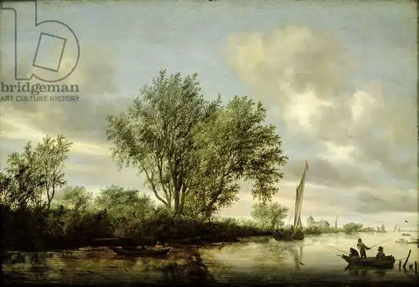 Ruisdael namaloval obraz Krajina s řekou v roce 1645. Převládající barvy tohoto obrazu jsou do zelena a jeho formát je na šířku. Rozměr originálu je 64x92.5. Umístěním originálu obrazu je Hamburger Kunsthalle, Hamburg, Germany. Reprodukci tohoto obrazu tiskneme na přání - můžete si zvolit rozměr i provedení reprodukce.