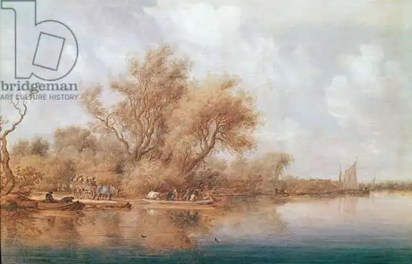 73x109 Ruisdael namaloval obraz Landing Stage v roce 1635. Převládající barvy tohoto obrazu jsou do hněda a jeho formát je na šířku. Rozměr originálu je 73x109. Umístěním originálu obrazu je Louvre, Paris, France. Reprodukci tohoto obrazu tiskneme na přání - můžete si zvolit rozměr i provedení reprodukce.