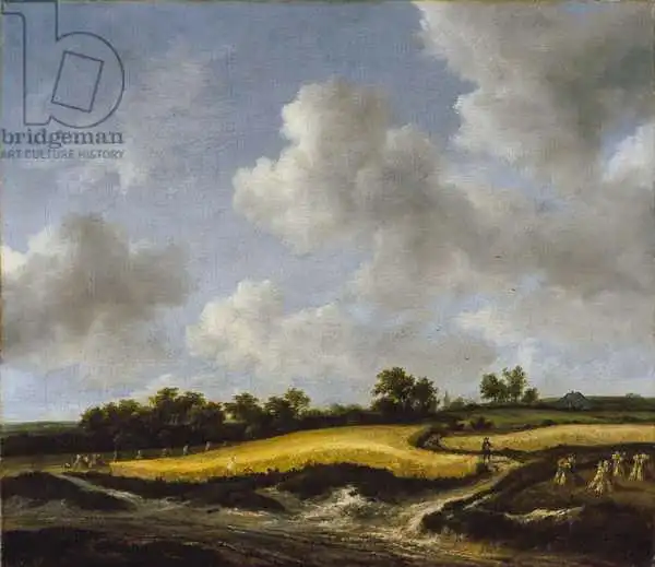 Ruisdael namaloval obraz Landscape with a Wheatfield v roce 1657. Převládající barvy tohoto obrazu jsou do zelena a jeho formát je na šířku. Rozměr originálu je 40x45.7. Umístěním originálu obrazu je J. Paul Getty Museum, Los Angeles, USA. Reprodukci tohoto obrazu tiskneme na přání - můžete si zvolit rozměr i provedení reprodukce.