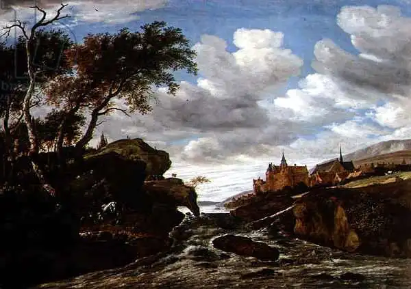Jacob van Ruisdael (1629-1682) byl holandský mistr a krajinář ve zlatém věku baroka. Narodil se ve městě Haarlem. Studoval u svého otce a strýce a později prodával rámy. Jeho tvorbu hodně ovlivnili tehdejší malířští mistři. Ač byl jeho talent mimořádný, nebyly jeho obrazy ve své době pochopeny. Proto v roce 1676 začal studium lékařství v Amsterodamu. Ruisdael rád maloval lesní krajiny, v nichž si zakládá na nepřeberném množství detailů rostlin i stromů, hře světla a stínů a opravdovosti mraků (např. Krajina s peřejí). V jeho pohledech na města a stavby v krajině, jako např. Vodní mlýny, vidíme vliv Rembrandta.